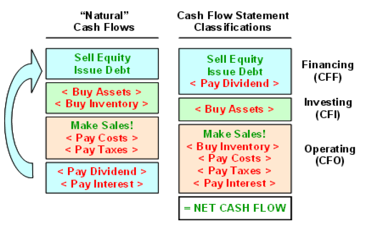 To understand the concept further, there are cash inflows and cash outflows in every business as money comes in and money goes out. For simplicity and understanding purpose, cash flows are broadly divided into the following three categories: